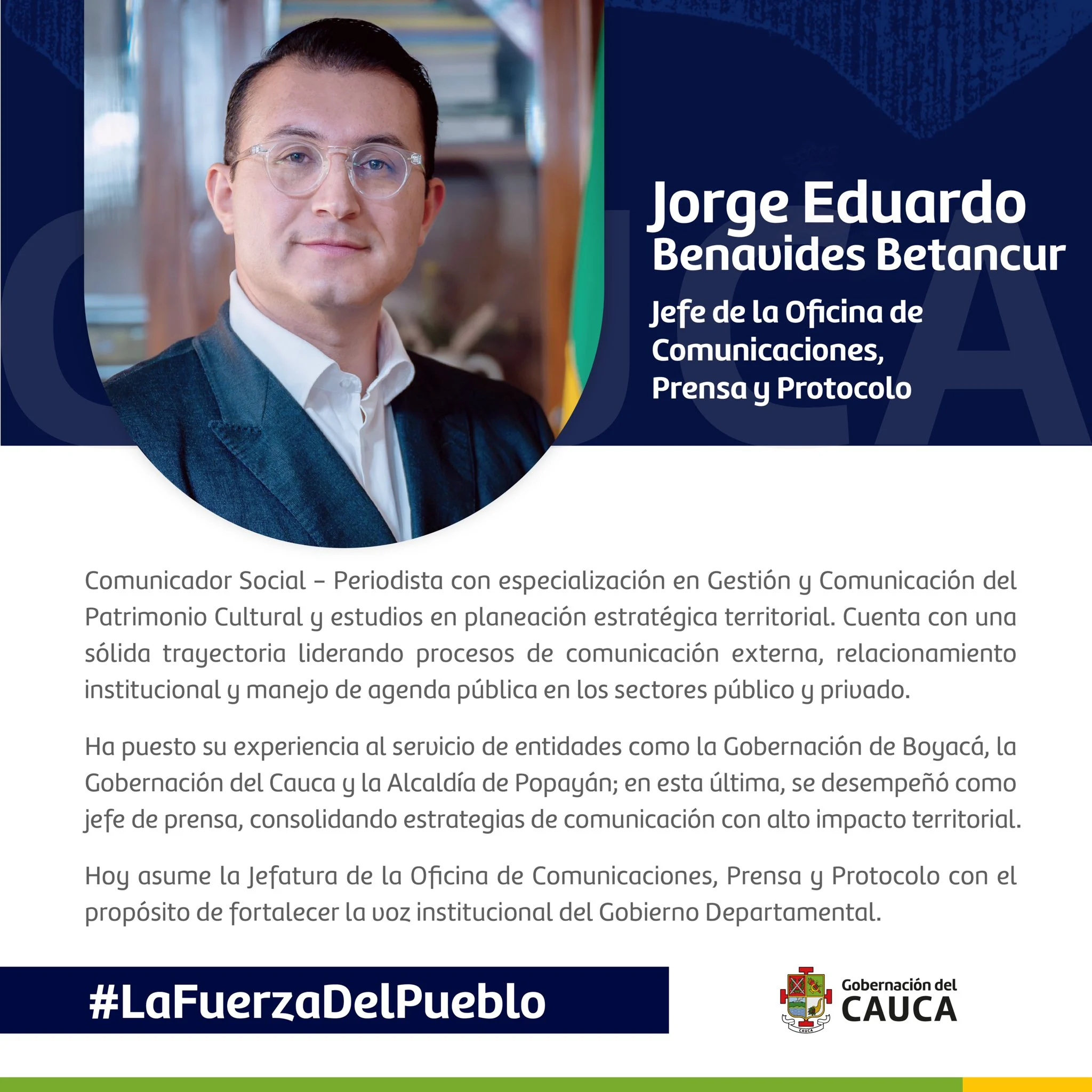 Felicitamos muy cordialmente a Jorge Eduardo Benavides Betancur Nuevo Jefe de Prensa de la Gobernacion …esperamos que en su gestion se de un fortalecimiento de