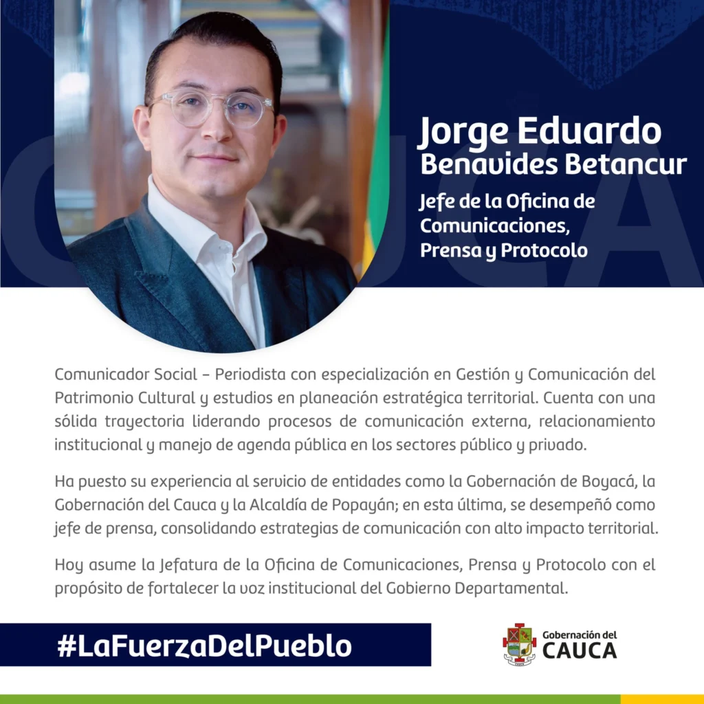 NUEVO JEFE DE PRENSA EN LA GOBERNACION DEL CAUCA